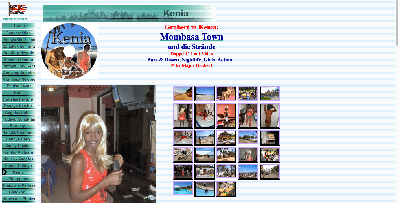 Major Grubert's reports and images about prostitutes in Mombasa, Kenya. German language, only. The sites offers CDs with Kenya whores, but there are a lot of free sexy images of Mombasa hookers on his site for free. Other chapters deal with Gambian hookers who freelance their way into tourist beds.