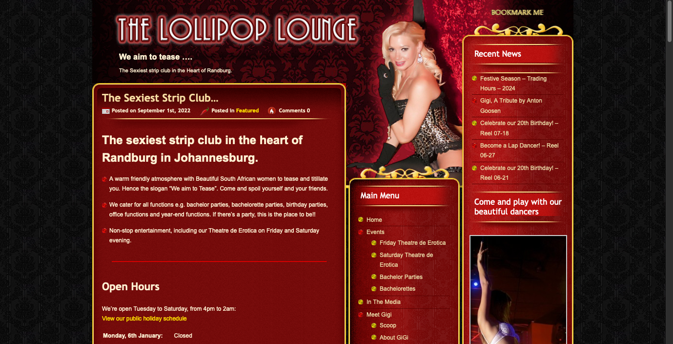Classy strip club in the heart of Randburg, South Africa. Afternoon shows on working days. Lollipop lounge caters for all functions i.e. bachelor, birthday, office and year-end. This is the place for erotic dance parties. Entrance fees from R100 to R150 depending on time of day. Girls are friendly and more normal than in other cities. Overall this club is known for being more modest than others.