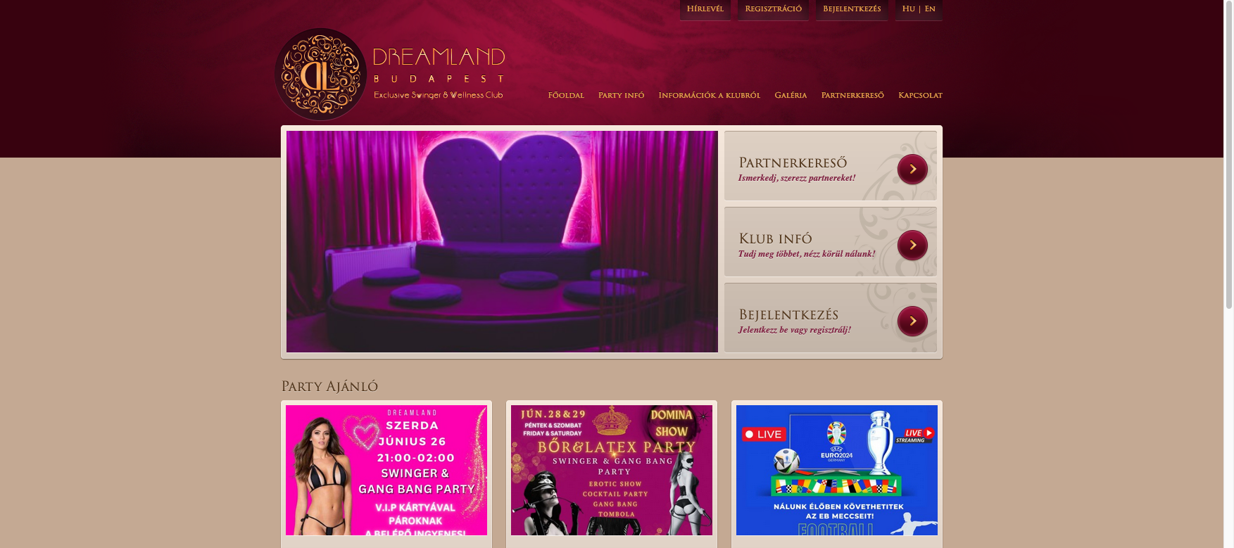Well known swinger club in Budapest. Couples from all over Europe travel to Dreamland for a weekend of joy and fun. The swinger club has been featured on TV various times. Various online resources of alternative lifestyle and swinging have already featured experiences with this old club.