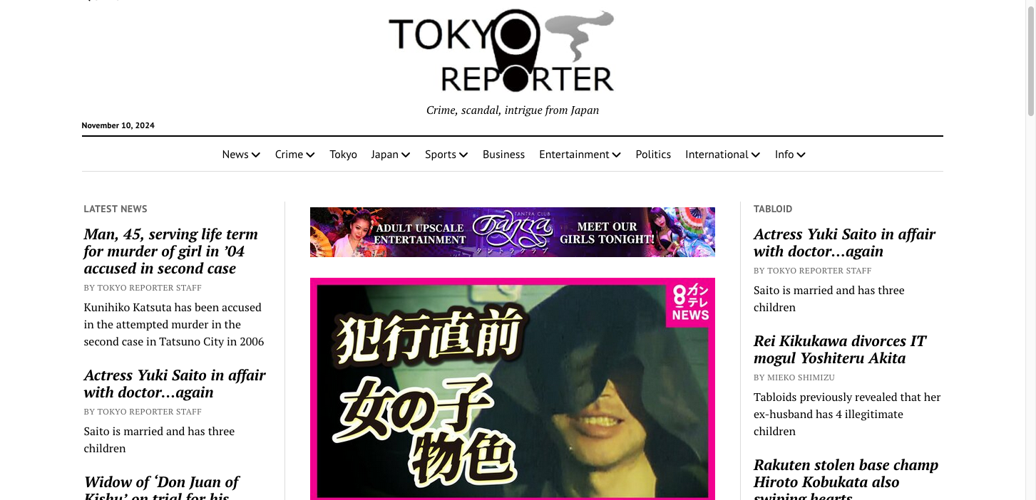 Sex and crime in Japan. The online tabloid with all hard facts and rumors about the adult entertainment business from night clubs to the enormously huge porn business. The articles are interestingly critical reads for those who like to know the scoop without translating from Japanese. Not all of us speak Japanese tongue, don't we. We prefer the tongue to be in our crack.