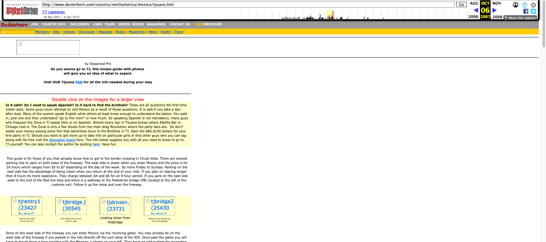 | Is it safe? Do I need to speak Spanish? Is it hard to find the brothels? These are all questions the first time visitor asks. Some guys never attempt to visit Mexico as a result of these questions. It is safe if you take a taxi after dust. Many of the women speak English while others at least know enough to understand the basics. You walk in, pick one and they understand "go to the room" or how much. So speaking Spanish is not mandatory, many guys who frequent the Zona in TJ speak little or no Spanish. Almost every taxi in Tijuana knows where Adelita Bar or Chicago club is. The Zona is only a few blocks from the main drag Revolution where the party bars are. So don't waste your money paying some fool that advertises tours to the Brothels in TJ. Save the $60-$100 dollars for your first party in TJ. Should you want to get more up to date info on particular girls or find other guys who you can tag along with for free visit the discussion board here. The info below supplies you with all you need to know to go to TJ yourself. You can also contact the author by posting here. Have fun |