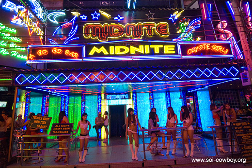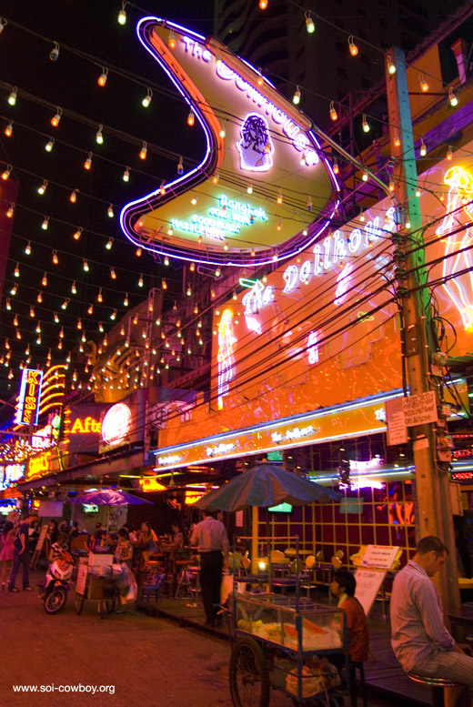The third most popular nightly entertainment venue for night active tourists is suited at the corner of Sukhumvit Road and Asoke. Soi Cowboy stays open until late at night and offers some of the best bars in town.