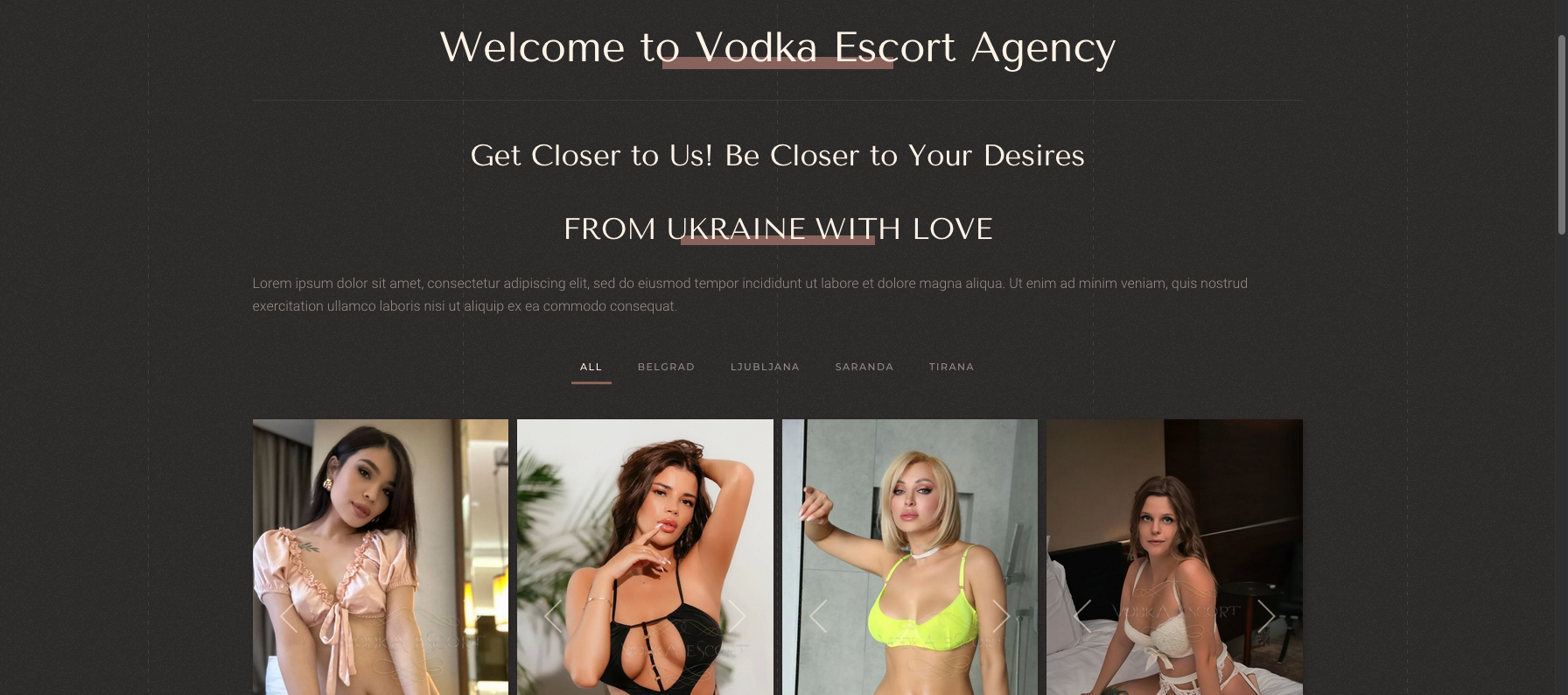 Vodka Escorts An unique website with plenty of pics of gorgeous models that are available for sensual company in the Ukraine. Easy booking and affordable prices. Their Slogan: Crystal clear feelings as best Russian Vodka! Link: https://www.vodkaescort.com/ No feedback yet Form is loading... This section can only be displayed by javascript enabled browsers.